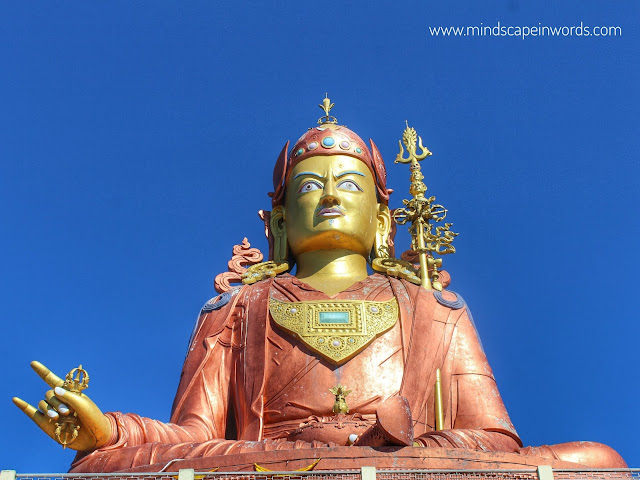 After a few hours, we stopped at Samdruptse. It’s a 45 meter tall statue of Guru Padmasambhava, the patron saint of Sikkim. It is at 7000 feet offering the magnificent view of Kangchenjunga on one side & the statue on the other side. We were able to see the Samdruptse statue when we were on the opposite mountain on our way to Char Dham. So, you can imagine how big it is & how incredibly it shines because of the golden colour.