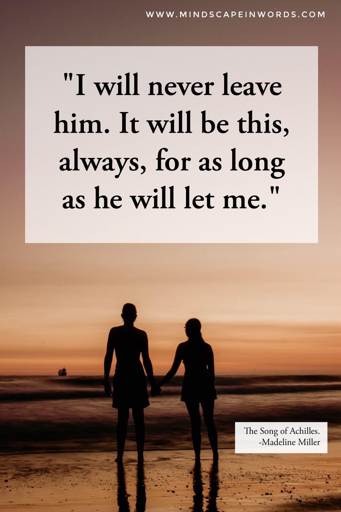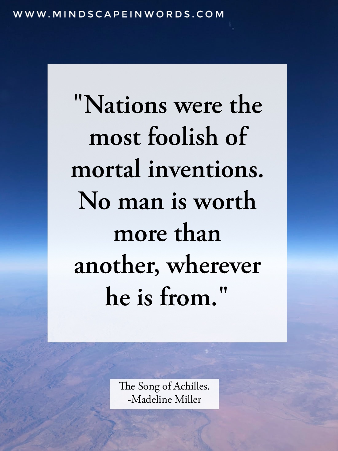 We have our protagonist ‘ Patroclus. You cannot help but connect with him & picture him as your friend. Starting from worrying about fitting in with others to dedicating himself to his love to fighting a war for his love, every single thing Patroclus has done in this book, is something we all have, in a more mortal or human sense. He is the underdog who is okay with being so, as long as he is with Achilles. He is someone who knows how to understand people in a deep sense. I loved his character throughout the novel. Usually, I would have found Patroclus & Achilles’ relationship to be a bit co-dependent, but I am not going there. I am not the one to fall for love stories, but oh this one got me right in the heart, which is why this post is entirely from my heart as well!