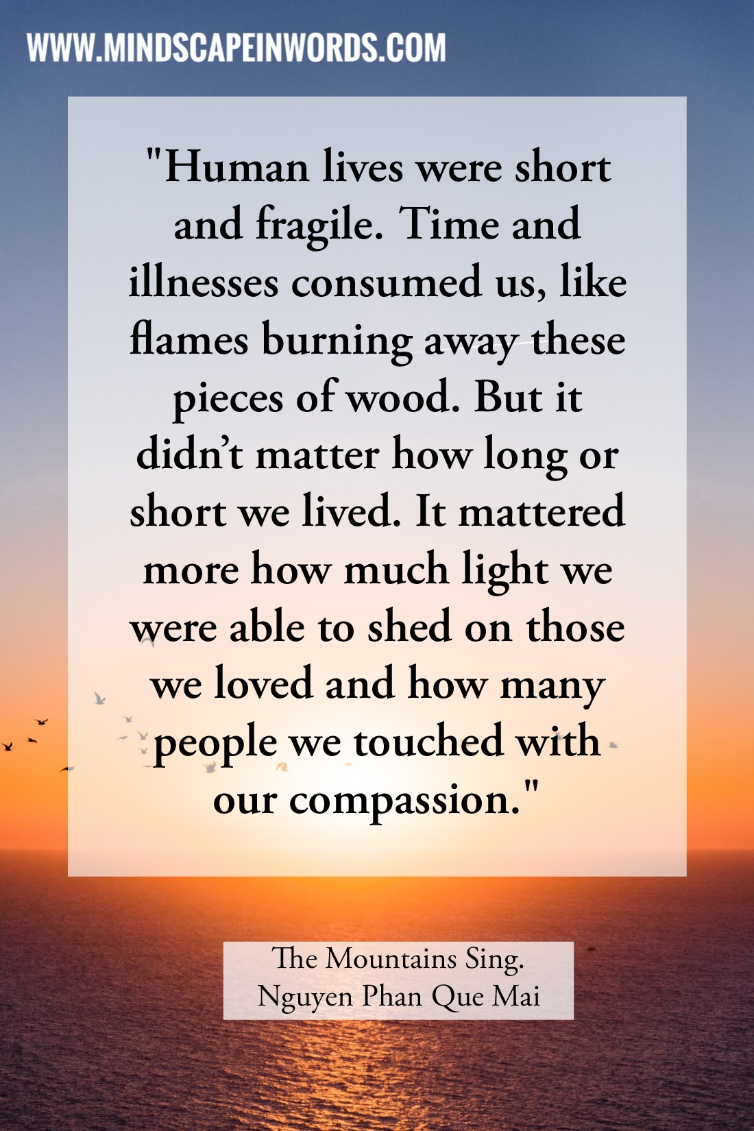 Reading The Mountains Sing is 90% about reading sad story after sad story with only 10% of happy moments. Yet, maybe because of this imbalance, it stays with the reader for a long time. Even though this is only a 342-page novel, it feels like a lot more because it spans 50 long years of struggle, hardships & layer upon layer of gut-wrenching pain. Like I have said for several other novels, this one should be mandatory reading for today’s youth so that we don’t repeat the mistakes of the past.