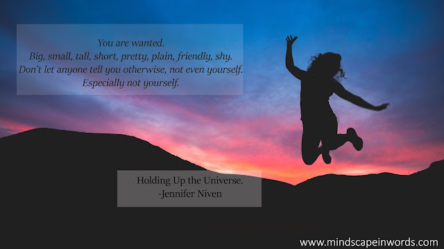 Holding Up the Universe is a coming-of-age novel focussed on 2 teens who have some serious issues and how they manage to work through them while surviving high school, family ups and downs and mean people. So, yeah, it felt like deja vu. It was that trip down the lane which I never wanted to remember.