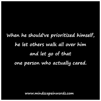 When he should’ve prioritized himself, he let all others walk over him and let go of the one person who actually cared.
