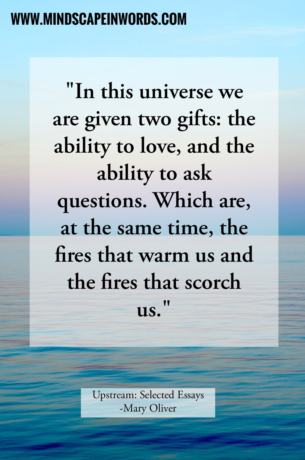Hi Readers! Finished my third book of the month. You know how I am a hard-core fiction reader? Well, I think I forgot and tried to venture into something new. It was a truly surreal experience. I had read only one of Mary Oliver’s poetry books before and I had not enjoyed it all. Now that I read these selected essays, I am pretty sure, I did not understand the poetry to appreciate or criticize it. Reading Upstream was a different experience altogether.
