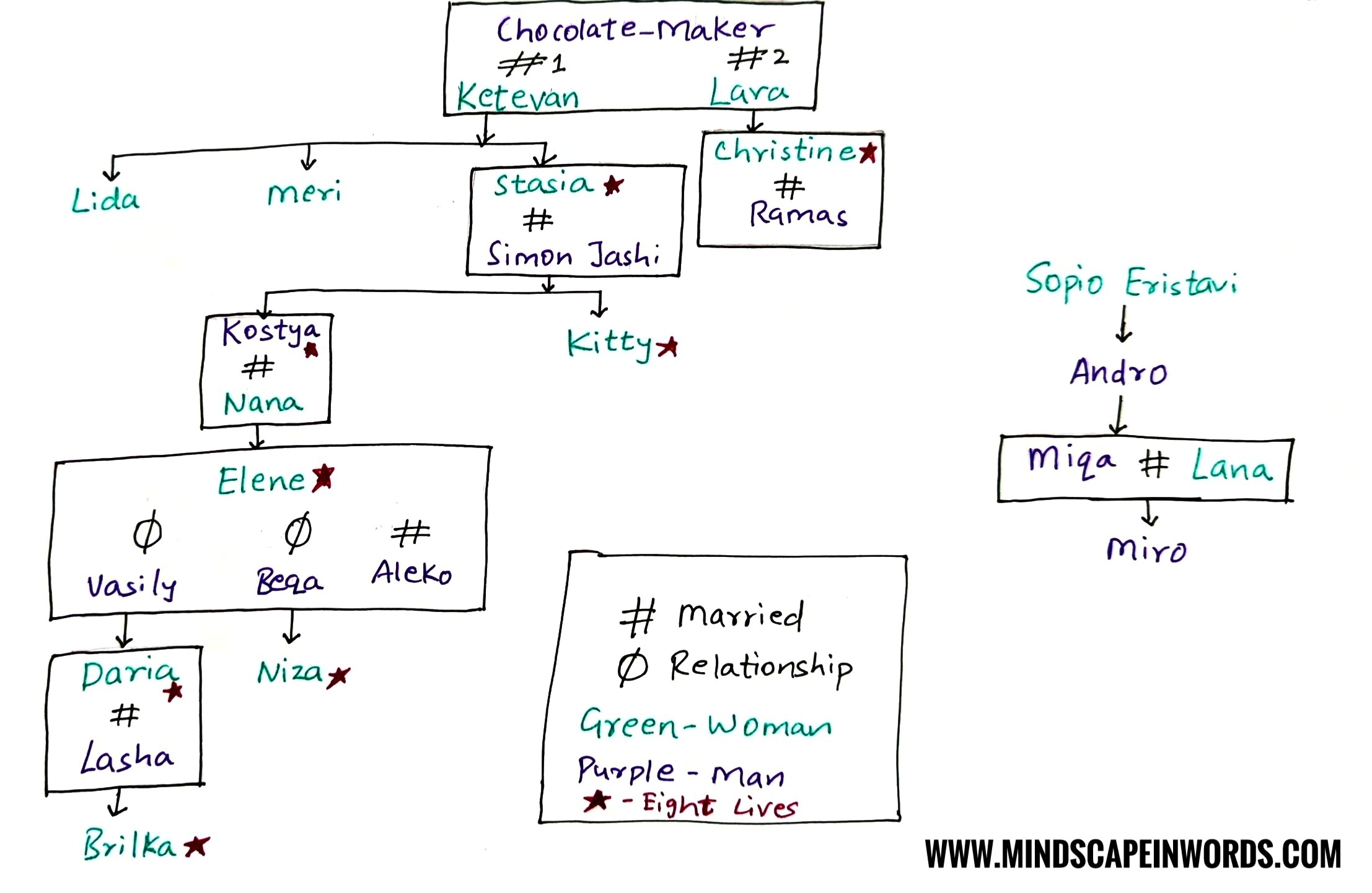 With a novel spanning over 100 years and a multigenerational tale, you need to know who is related to whom. And, if in the future, you want to revisit the book and read it again from another perspective, it’s good to know how everyone is connected. This is why, I thought it was essential that my review contain a family tree of the Jashi line. Here is an image, because I couldn’t make this on any app.
