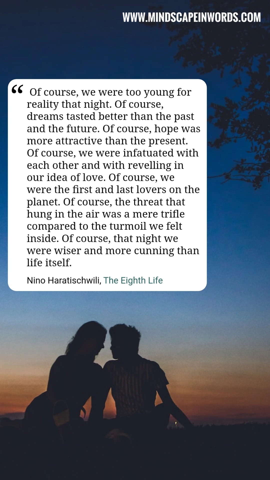 They say history is always written by the winners. But when it’s history of your father and his father and his father before, we’re all just so overwhelmed with our daily lives that we don’t think about our family having a history. But, we do. For you and me and Brilka and Stasia, the history is bound in love. The love that Niza had for her sister Daria. The love that Daria was never able to seek from Kostya the way he gave it freely to Niza. The love that Kostya had for Simon more than he had for Stasia and then the love that Elene had for Kostya more than she had for Nana. The love that Kitty seeked from her older brother but was never returned. The love that Kitty and Andro, Elene and Miqa, Daria and Miro had. You either give too much or not at all, or all of it to one person so there’s nothing left for others. But this love is the essence that flows through history connecting us and always becomes the core of how we make our life choices.