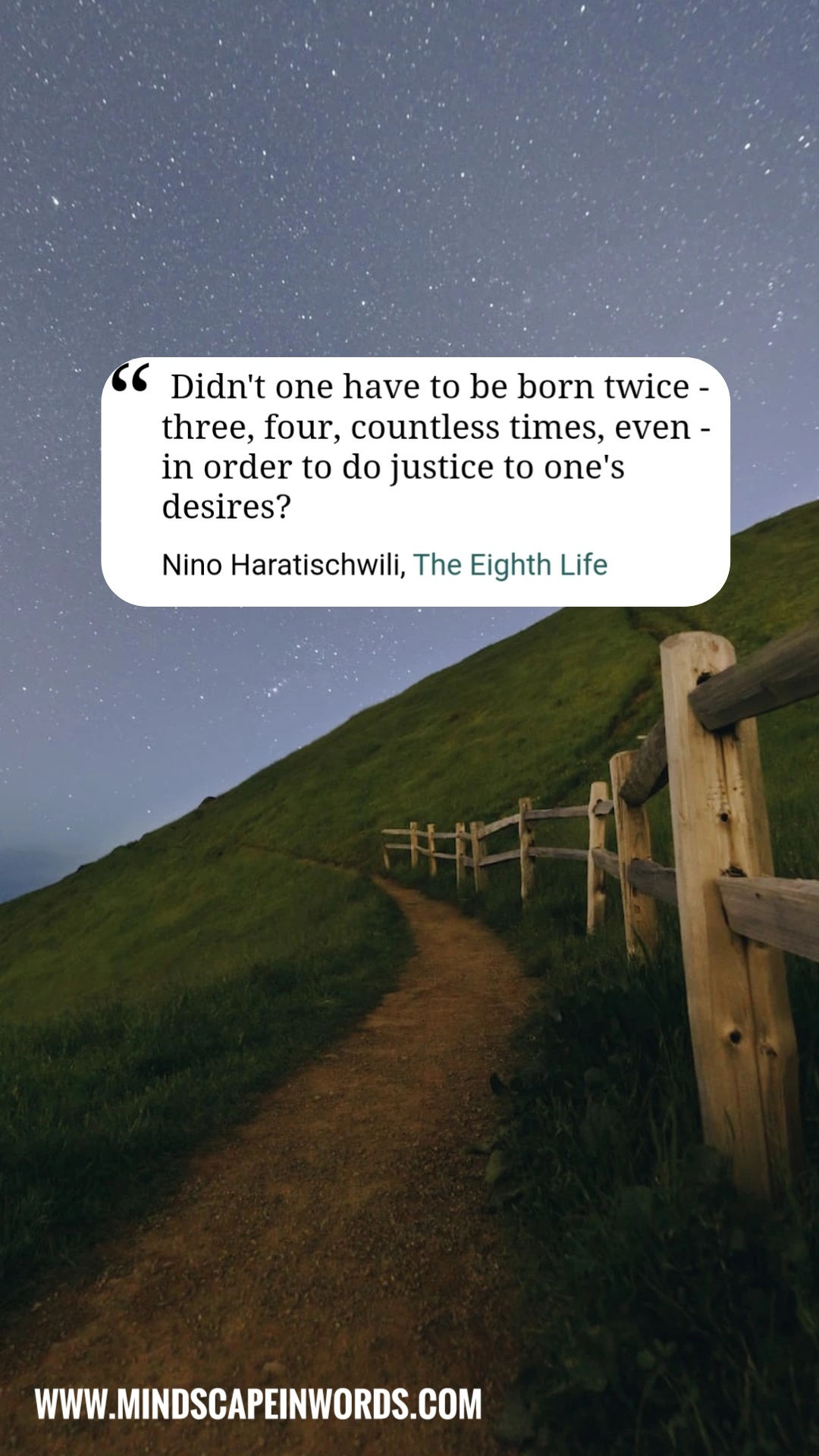 For Brilka. Seven lives passing the history onto the Eighth Life. A rich history enriched with struggles, choices, baggage, pain, suffering, dreams, hopes and everything in between. History that changes completely if Stasia had continued dancing instead of marrying Simon. History that changes completely if Sopio and Stasia didn’t have the bond which made Stasia welcome clan after clan of Eristavis in her home. History that changes completely if Christine had not gotten involved with the Big Little Man. History that changes completely if Stasia was able to bring back her son Kostya from war. History that changes completely if Kitty had never left Tbilisi. History that changes completely if Elene had stayed a daddy’s girl all her life. So much history with even one tiny decision branching off infinite parallel lives.