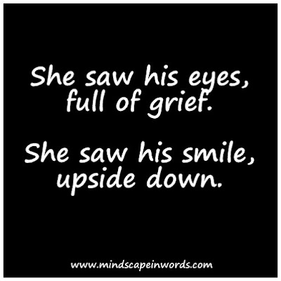I love the way you described his upside down smile. I liked that image.