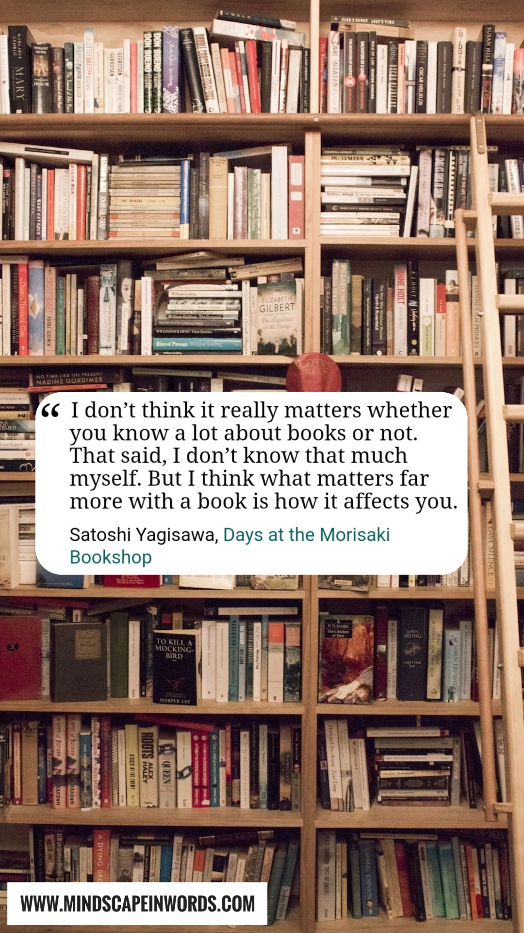 Hi Readers! October is almost at an end. It went by quickly but luckily not as quickly as September. I read Days at the Morisaki Bookshop last week. It was a short book, so I finished it over the weekend. I really enjoy reading books about books, so it is impossible to not love it. But, it always comes at varying degrees of likeness. Check out my experience of the book!