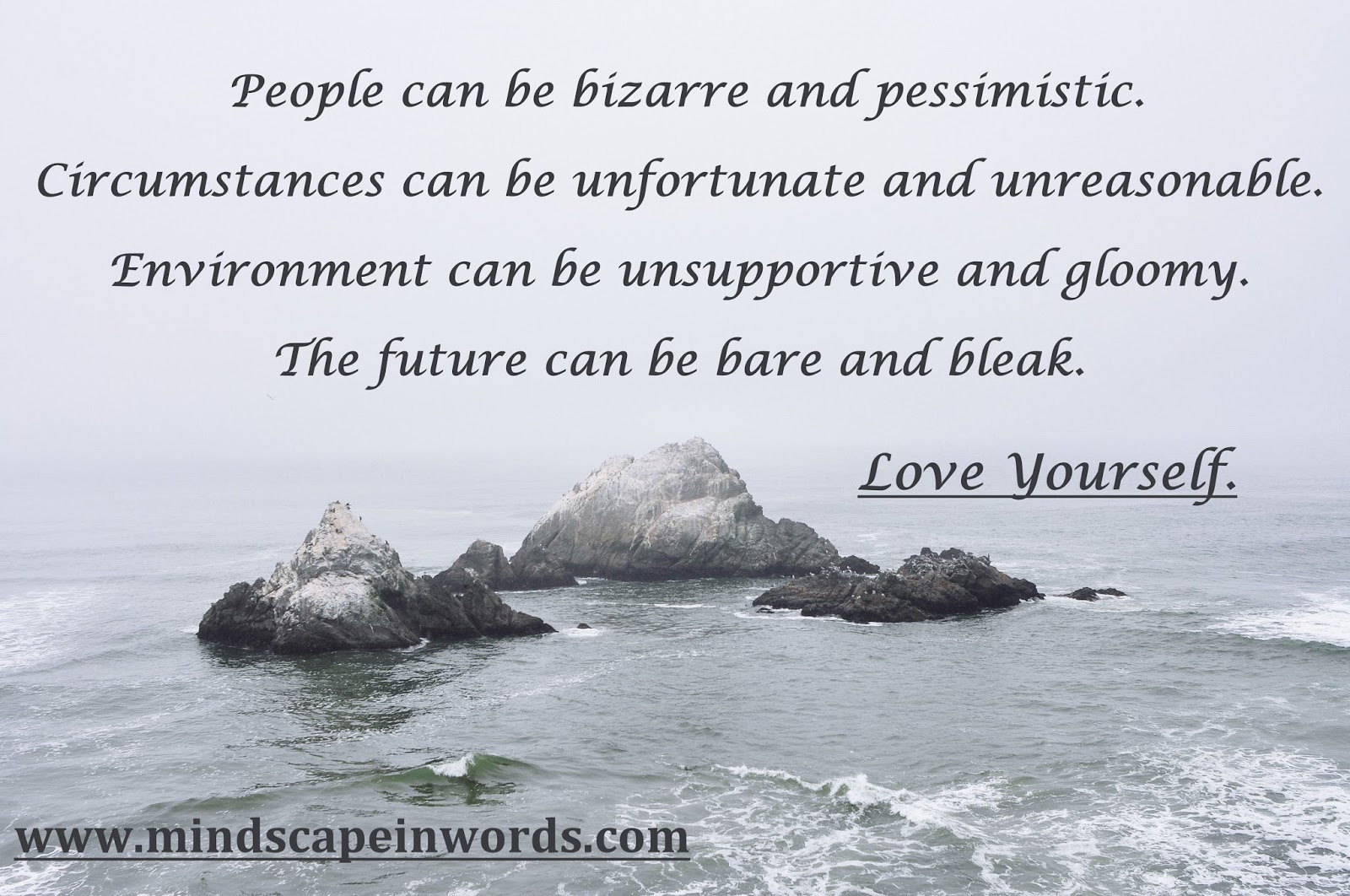 People can be bizarre and pessimistic. Circumstances can be unfortunate and unreasonable. Environment can be unsupportive and gloomy. The future can be bare and bleak. There will be times when all you want to do is scream at the top of your voice. There will be times when all you want to do is not think. There will be times when you feel numb and clueless. There will also be times when you’ll wish a start over. There are just so many random things which cause so many random emotions. Among those many random emotions might be some which might really destroy you. And you can’t let that happen. You can’t let those feelings take over yourself.