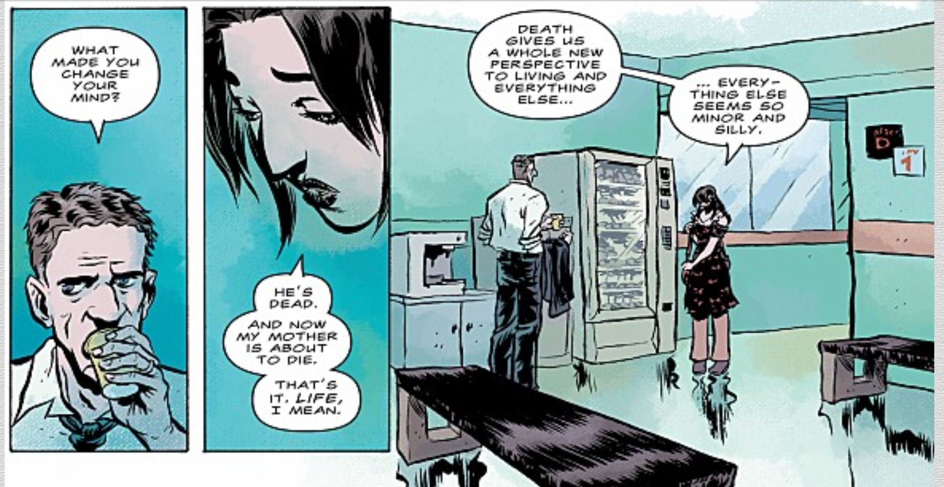 We follow the life and deaths of Brás de Oliva Domingo. He is a common man who aspires to be a writer but is forced to write other people’s obituaries. At the end of each issue, Brás dies. And, at the start of each issue, the story picks up with a time jump as if what would happen if he hadn’t died.
