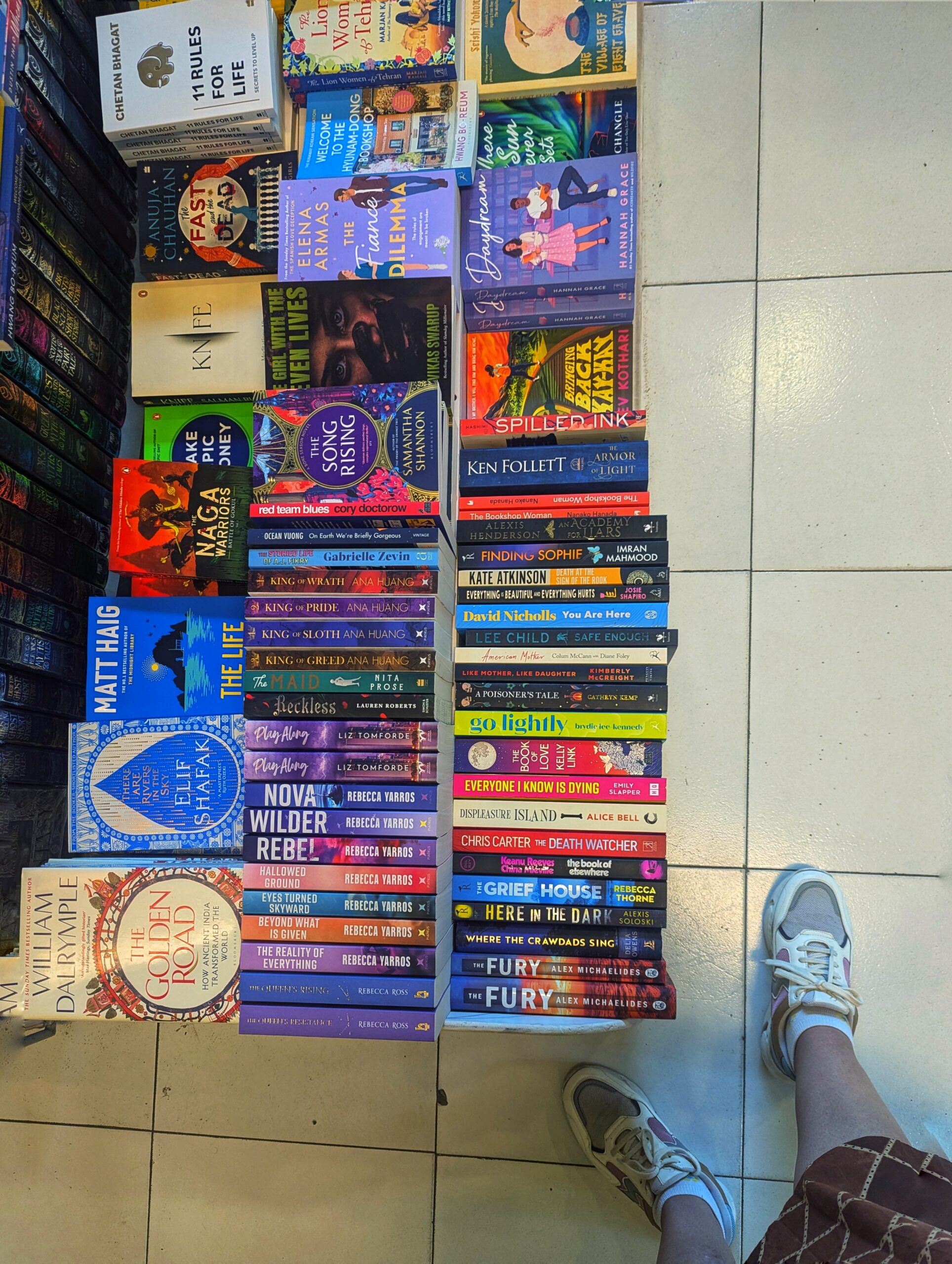 Slide 8 to 11: I visited two bookstores in Indore, of course! 8th is Readers’ Paradise and 9th is Bahrisons! And, of course, 11th is an airport photos while reading the new book I bought!