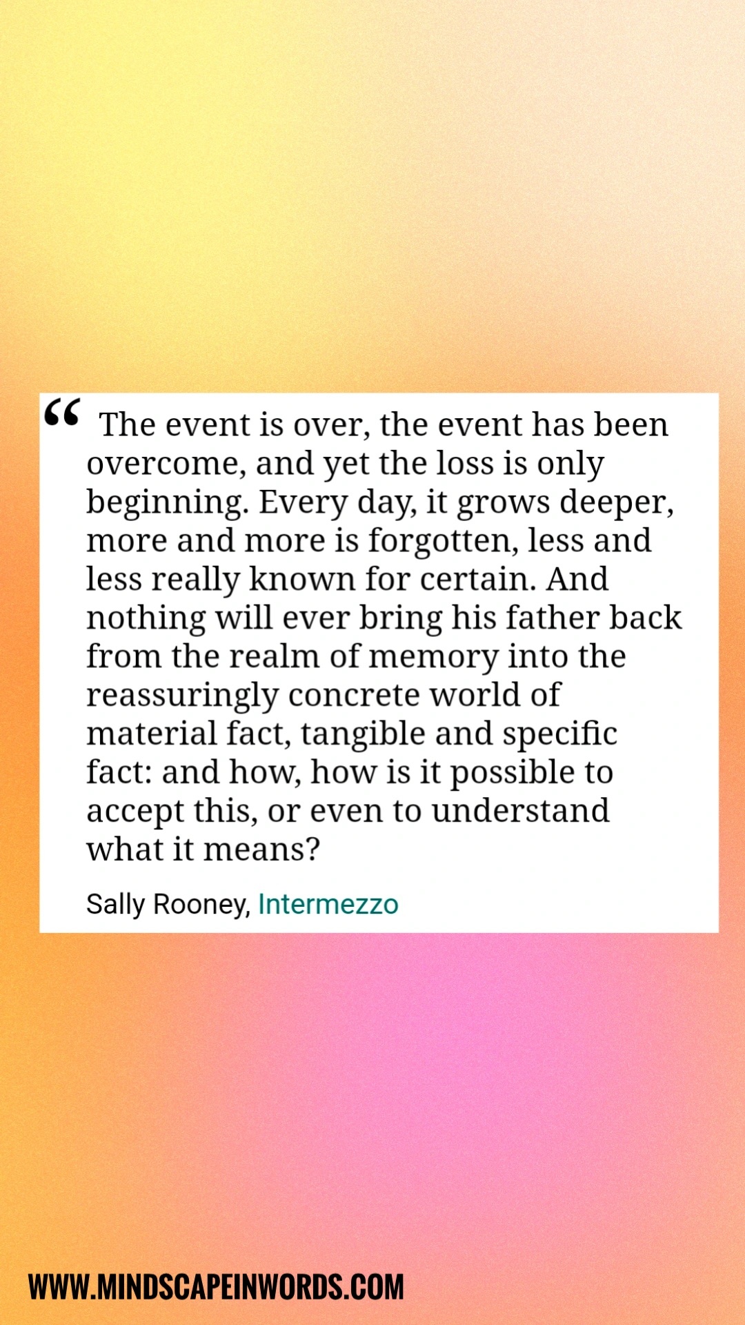There isn’t a strong plot to the book. There is no structure to the story or the punctuation. But, these things are never found in Sally Rooney’s books, so you can’t expect them. What you can expect is the nature of human behaviour molding, evolving, growing, diminishing, flourishing in all its glory. Intermezzo is masterful in its writing, though provoking in its approach of emotions and goes beyond the standard structure of a novel. It makes you think too much, feel all the way more and also wants you to evolve in your own maturity. I haven’t read anything quite like this book, which though unsettling, stays that way in the best and worst ways.