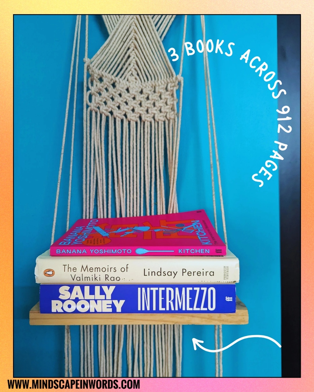 So, as usual let’s start with literature! I read THREE books across 912 PAGES in JANUARY. I started off really well. The first book was a 4 star, the second a 3 star and the third 2.5 stars. But the fun part is that with ‘Intermezzo’, I finally loved a book by Sally Rooney. With ‘The Memoirs of Valmiki Rao’, I read the first book in the ‘From the People of Languages’ reading project hosted by Kunal and Misha on Bookstagram. And, with ‘Kitchen’, I read for ‘January in Japan’ like I do every year. That’s not half bad, you know? Since everyone’s reading preferences are different, here are my thought snippets on each of the book I read. Maybe you’ll want to pick your next read from these three.