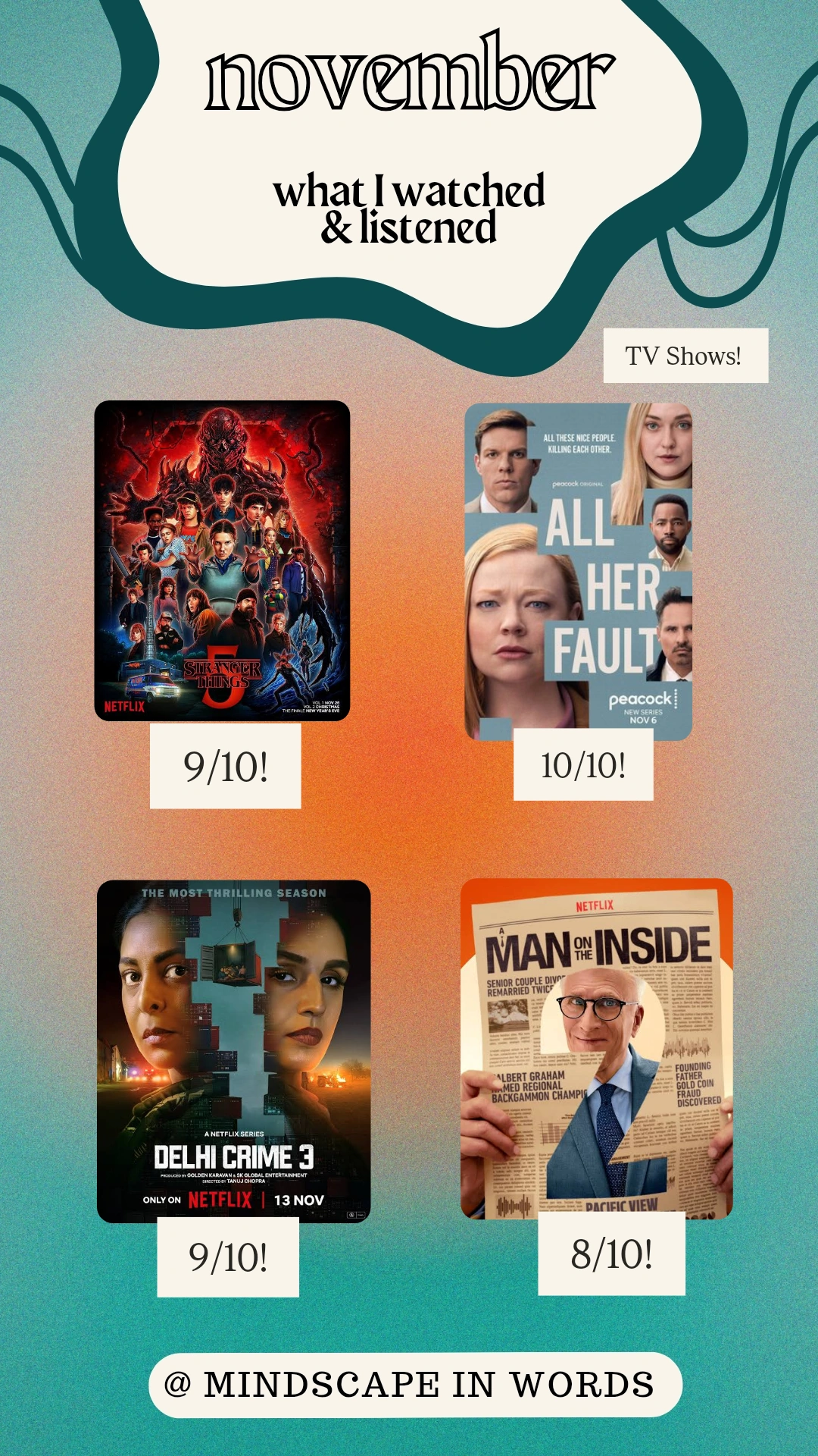 Hi Readers! November went by very quickly. It was kind of a mellow month, where nothing major happened. The major highlight was meeting two of my friends after the longest time. This was just the second time we met in 2025, so you can imagine! Work has continued to be hectic, but I think I have reached nirvana stage where I have stopped letting it impact me. It’s just supposed to be a part of life, not the entire life. My reading spree of October gladly continued in November as well, for which I was very happy. I didn’t read as much as the last month, but definitely higher than the monthly average I’ve had this year. Have a look, will you?