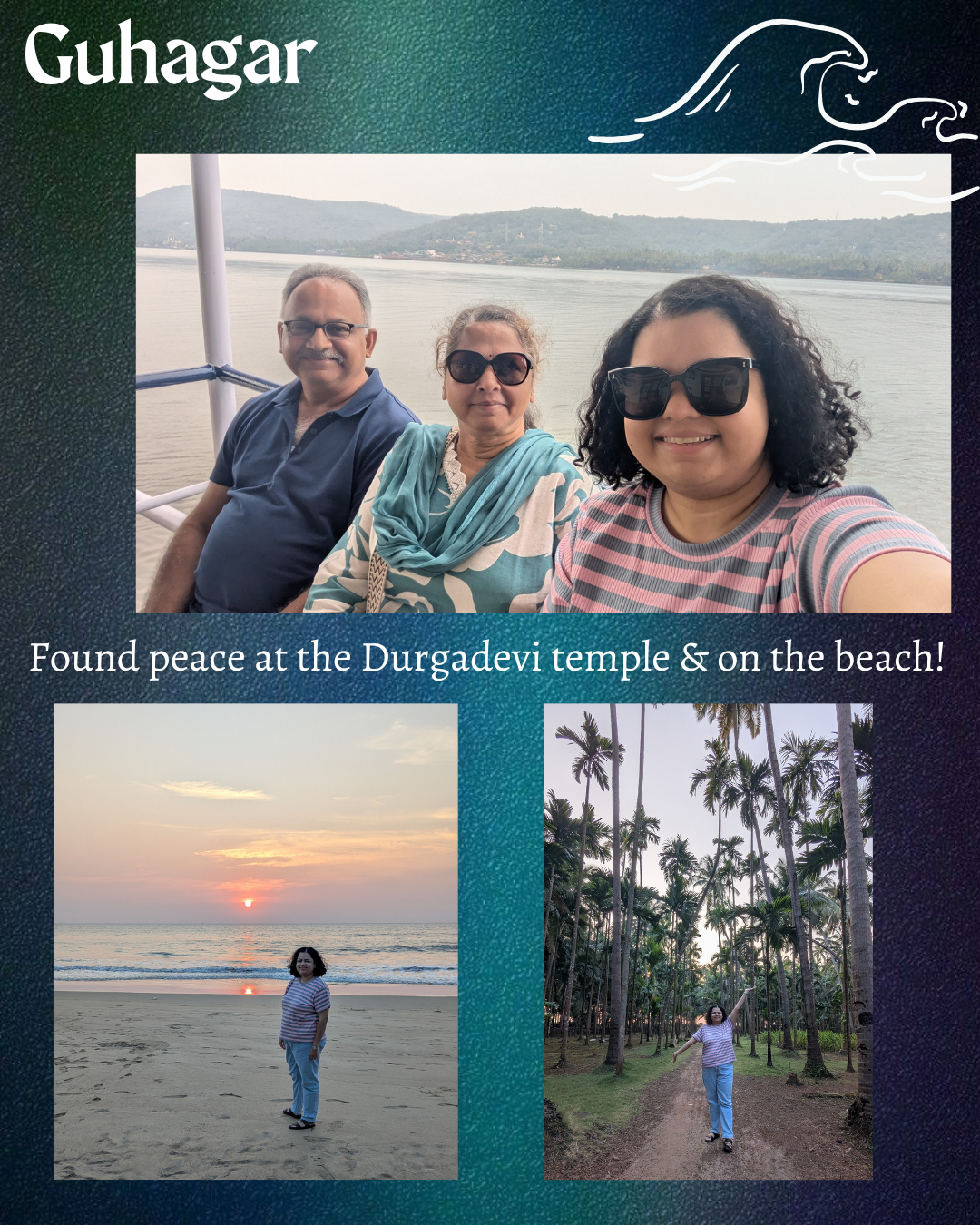 In November, I went to Guhagar and Dapoli with my parents. It’s always very peaceful in Guhagar. And, in Dapoli, it was under sad circumstances, but it was good to see all my relatives.