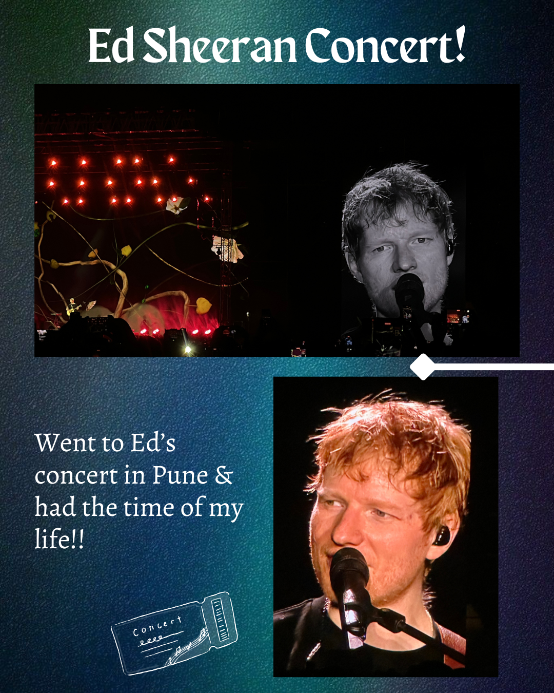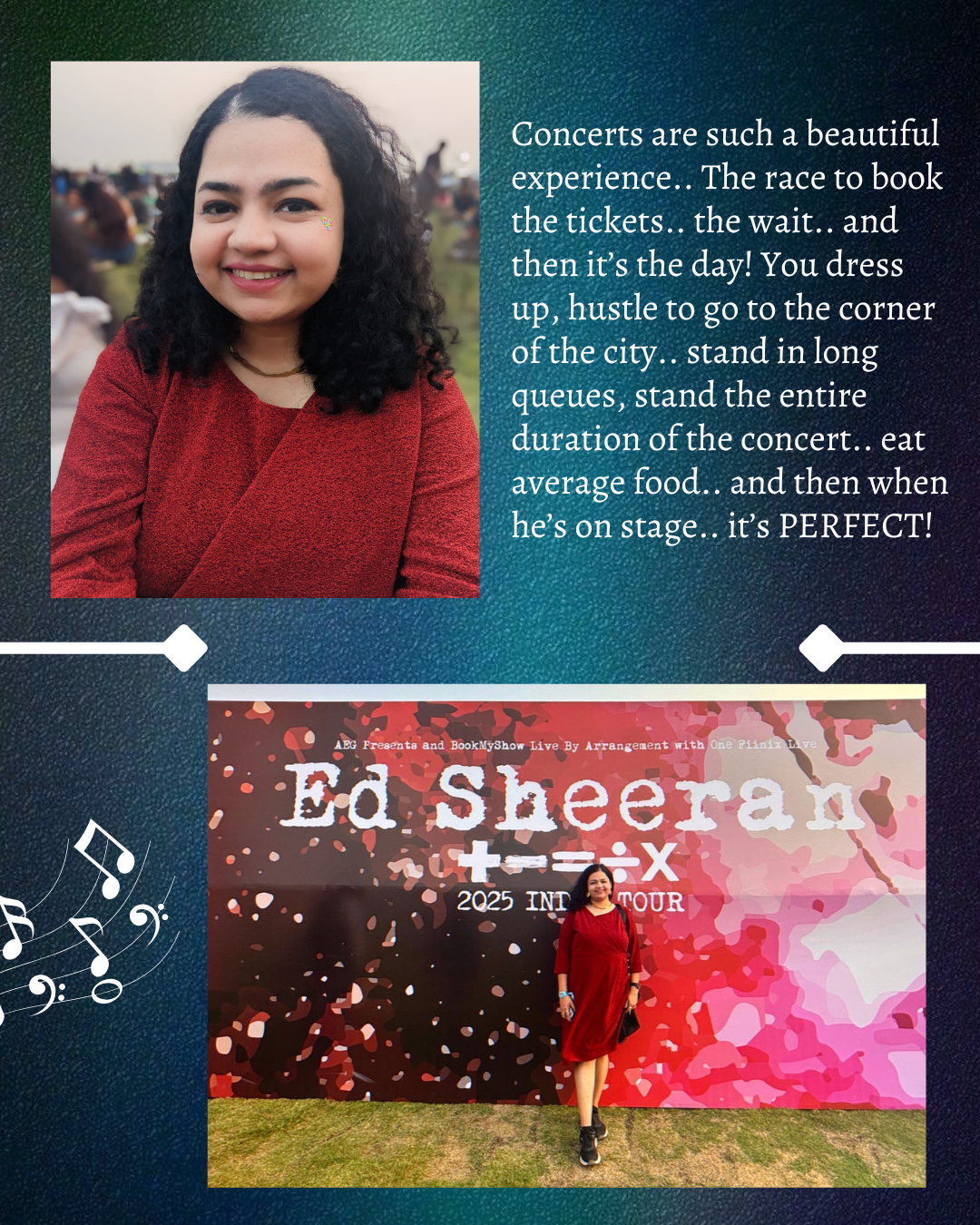 I have been listening to Ed Sheeran’s songs for over a decade. He is always in my Top 5 artists on Spotify Wrapped. So, when in December he announced his India tour, I decided to go to his concert in Pune. Now, the last concert I have attended was ten years ago. And, it was also Ed Sheeran’s first concert in India. It seemed like a nice full circle kind of moment.